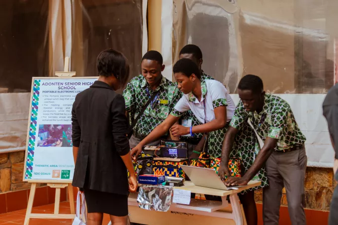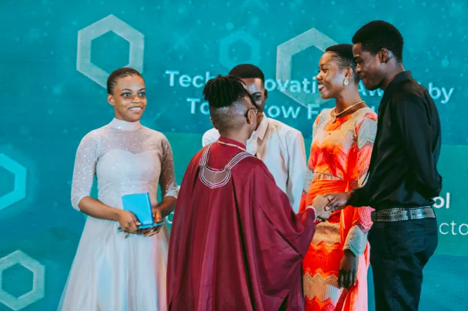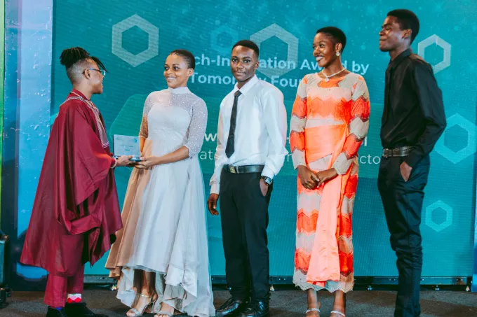 Représentée par l'une de nos jeunes représentantes au Ghana, Nadia Owusu a eu l'honneur de remettre le Prix Future Tech-innovation de Tomorrow Fondation à la Tarkwa Senior HighSchool, en reconnaissance de leurs idées innovantes, originales ou révolutionnaires. L'équipe a présenté un tracteur multifonction automatisé appelé "EVA G1" axé sur l'utilisation de la technologie d'énergie renouvelable pour mécaniser les opérations agricoles et améliorer la productivité des petits agriculteurs.